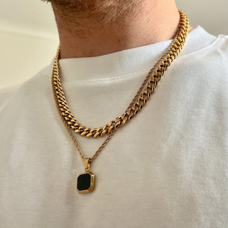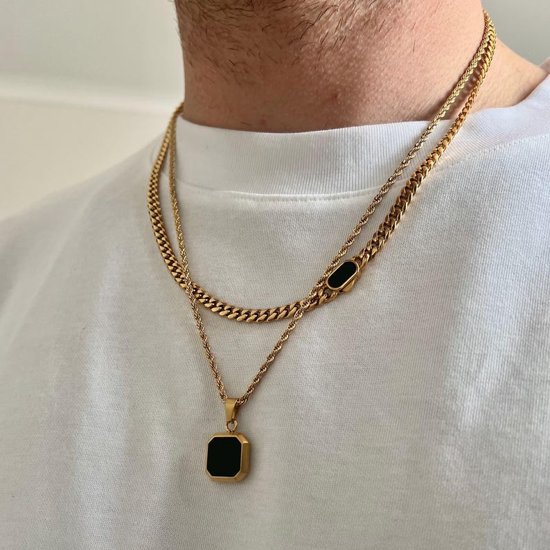Mens Gold Onyx Necklace - Black Onyx Pendant Necklace For Men - Gold Pendant Chain - Mens Jewelry - Mens Gold Necklace By Twistedpendant