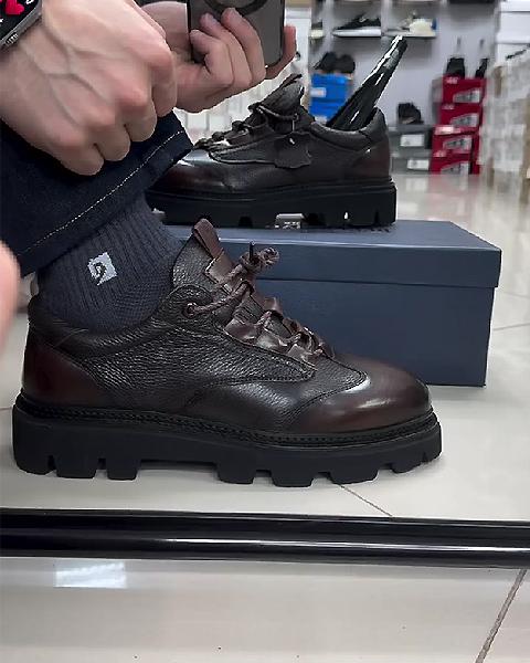 Men's Brown Leather Lace-Up Boots – Durable & Stylish Outdoor Footwear