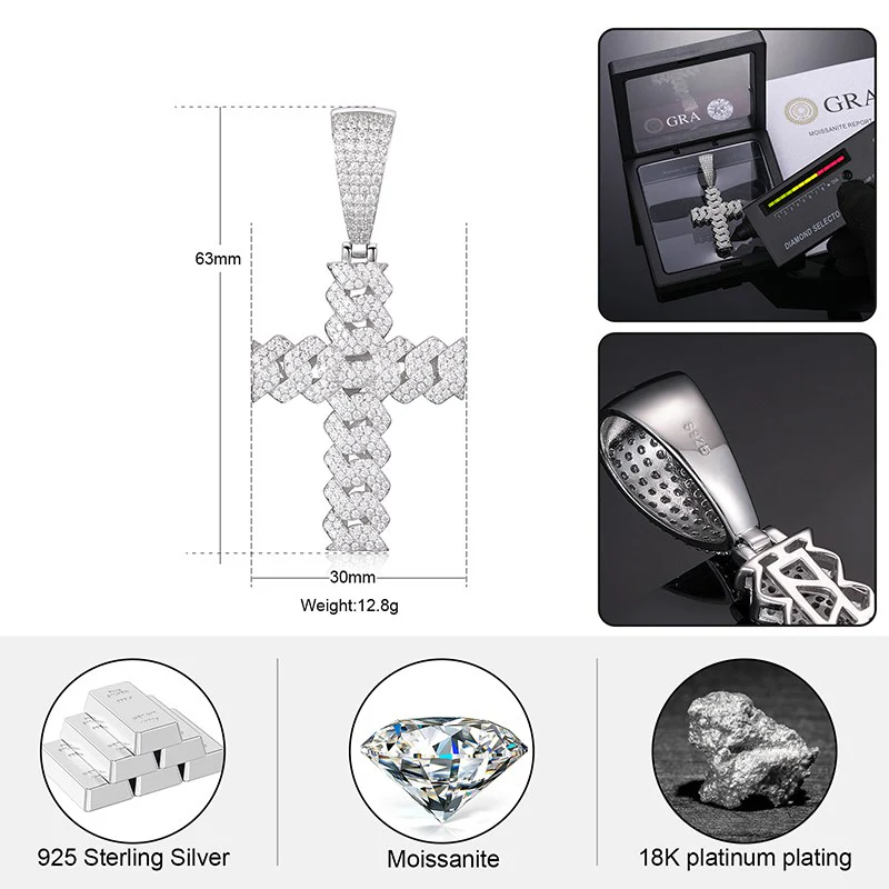 S925 Moissanite Cuban Cross Pendant