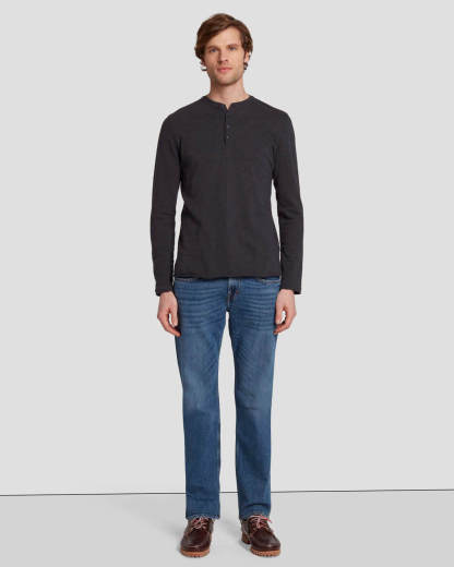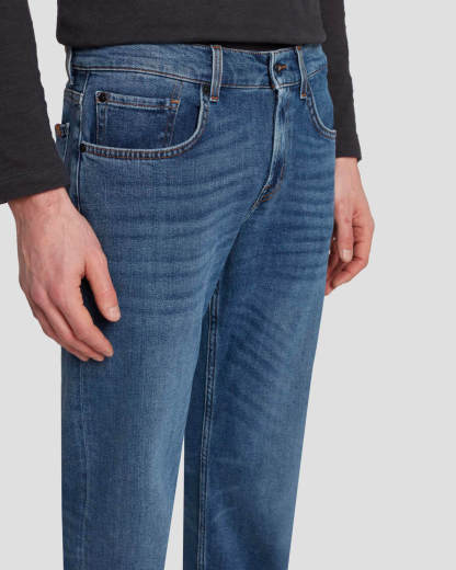 Denim to kick back in. Our relaxed Austyn is comfortable and relaxed - without looking baggy. This medium blue wash features heavy whiskering and sanding for that lived-in look, while our iconic 7 squiggle embroidery on the back pocket adds our signature touch.
