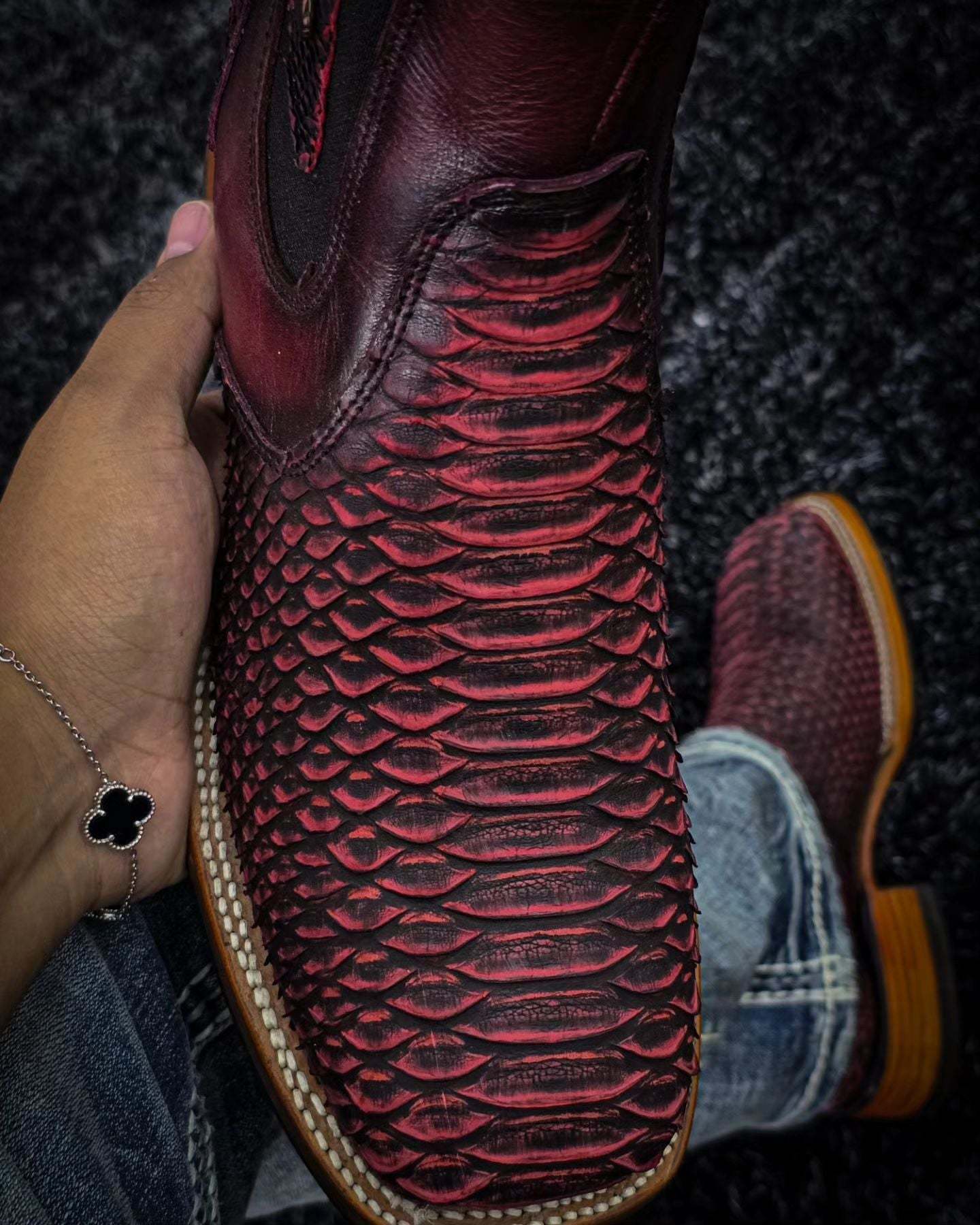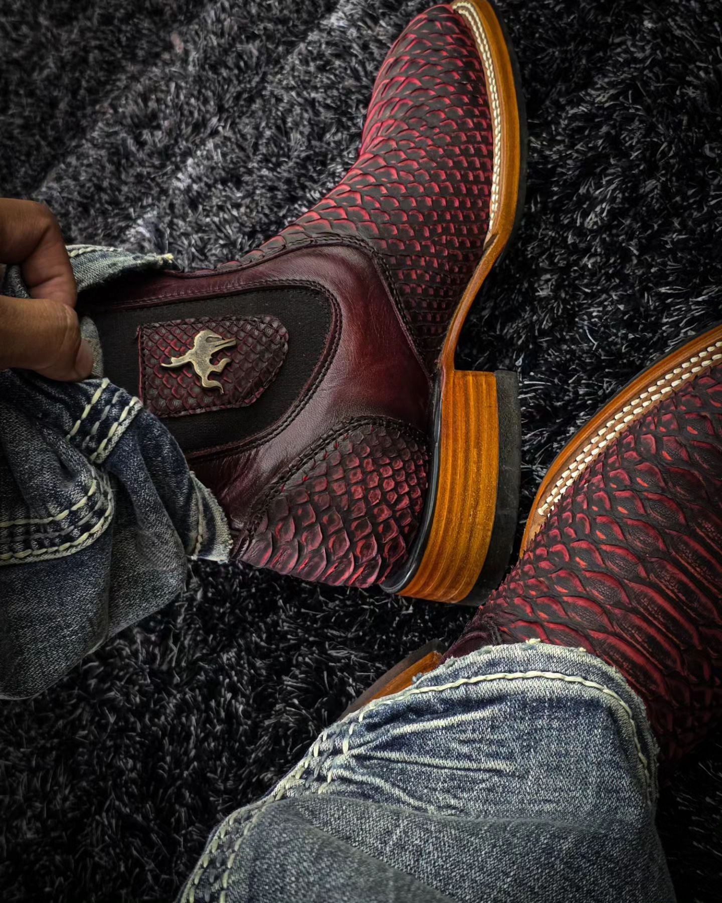 Dark Red Vintage Scale Pattern Slip-On Boots