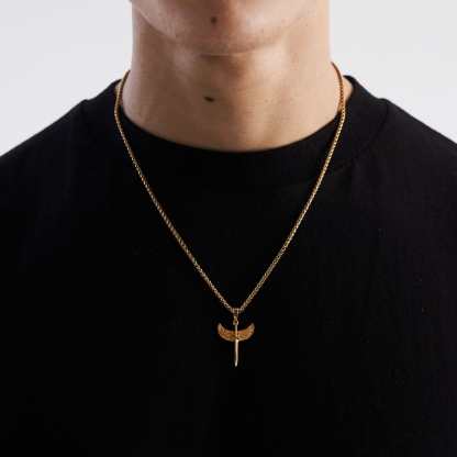 This 18K gold necklace features a finely detailed Instincts pendant, a reminder to sharpen your mind, trust your gut, and always be ready. As the old adage goes, “Better to be a warrior in a garden than a gardener in a war.” It’s suspended from a premium golden bail, a 2mm wheat chain, and finished with scratch and fade-resistant protection