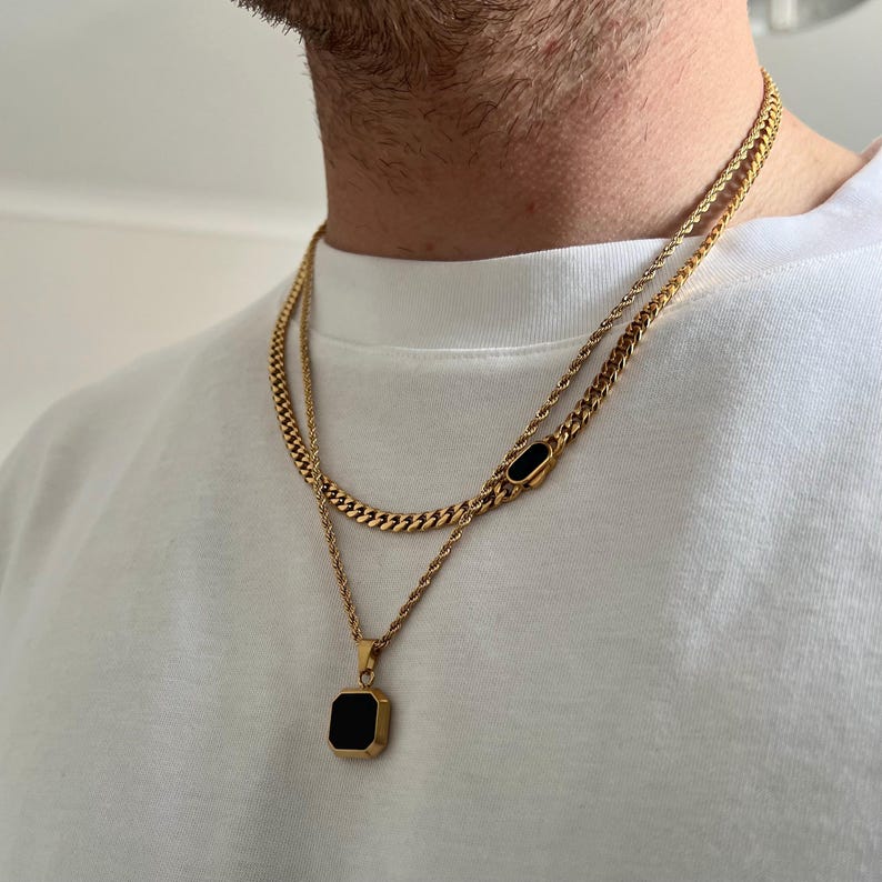 Mens Gold Onyx Necklace - Black Onyx Pendant Necklace For Men - Gold Pendant Chain - Mens Jewelry - Mens Gold Necklace By Twistedpendant