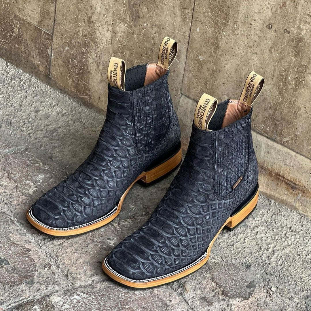 Midsize Jumbo Python Black Square Toe Ankle Boots