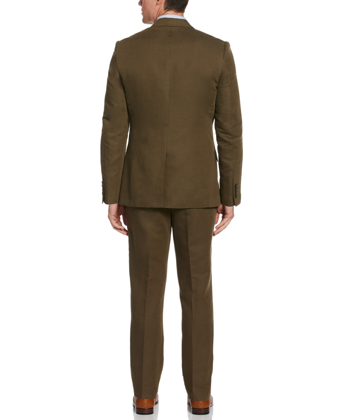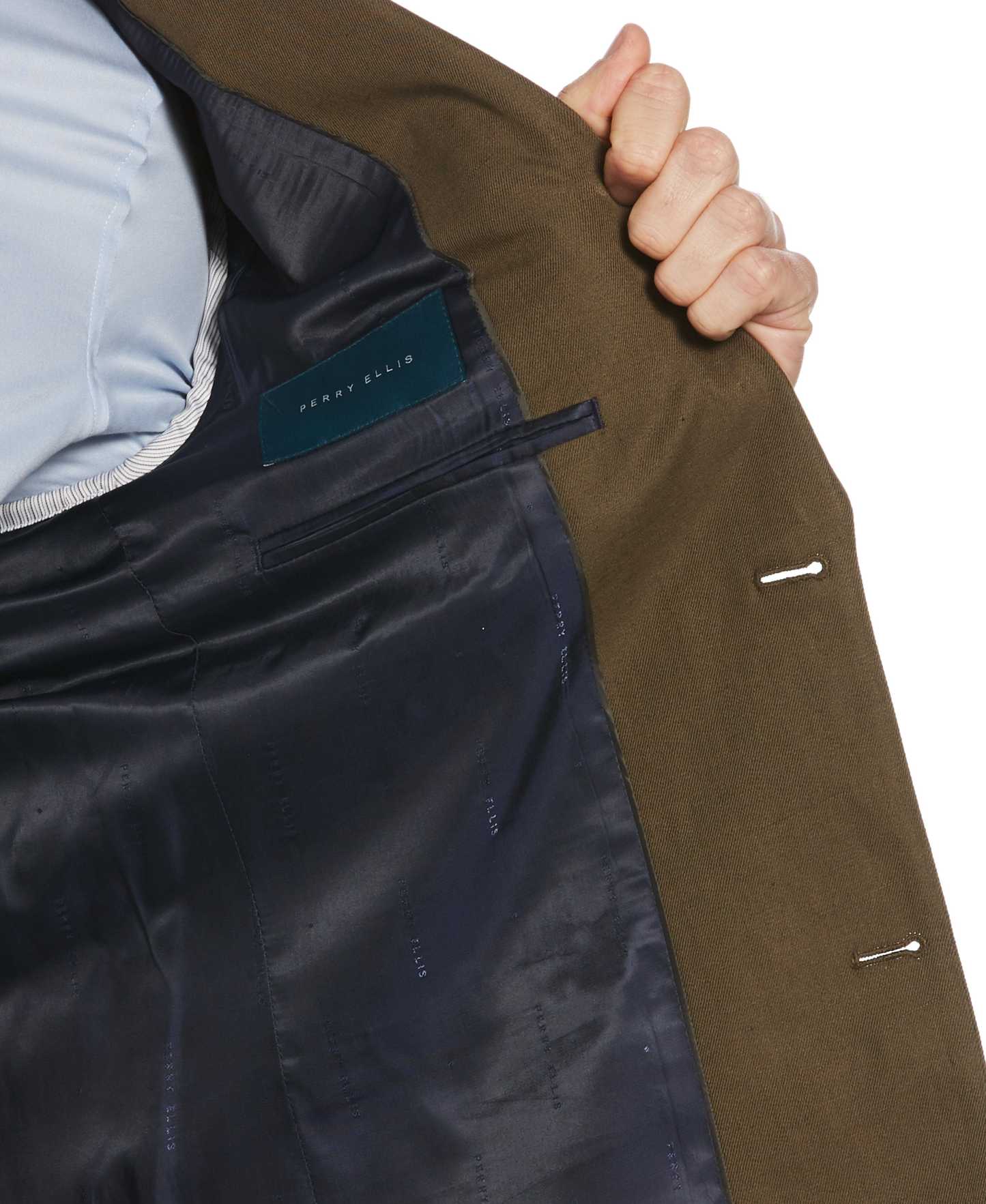 Complete your polished look with this solid-colored Perry Ellis slim fit suit jacket. It's crafted from a breathable linen-cotton blend with lightweight twill fabrication and added stretch for flexible all-day comfort. A chest pocket and two flap pockets provide convenient storage space for small essentials.